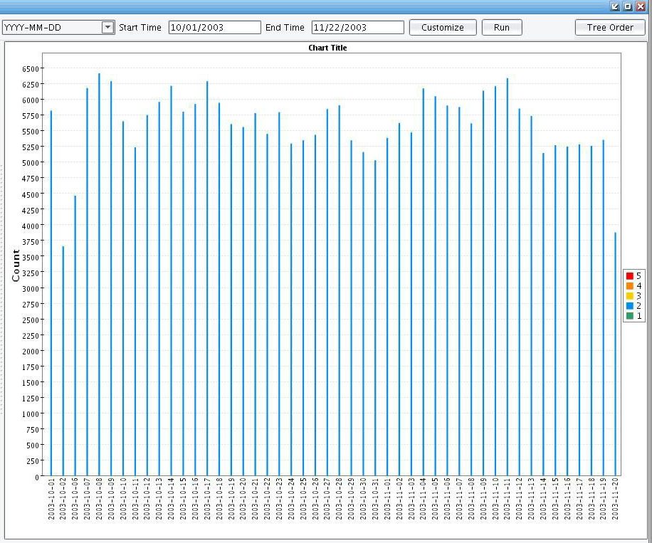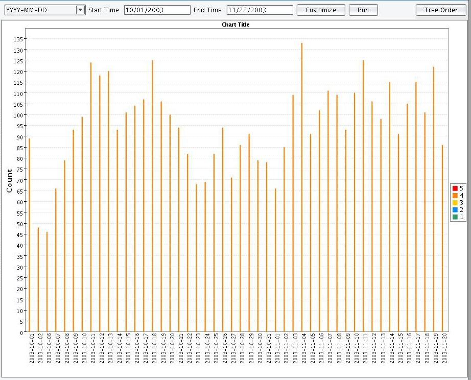 How is CodeRed doing nowadays? Pretty well, it seems. The plot above shows the CodeRed related event counts in our honeynet for the last couple of months. Will it ever die? Nobody can say for sure, but it doesn't look likely. July 2001 feels like last century, but CodeRed is here with us. Some say its the "script kiddies" trying to sneak under the noise, but I doubt that. CodeRed should have eliminated most of the vulnerable and exploitable boxes... The data might contain a small mix of CodeRedII.